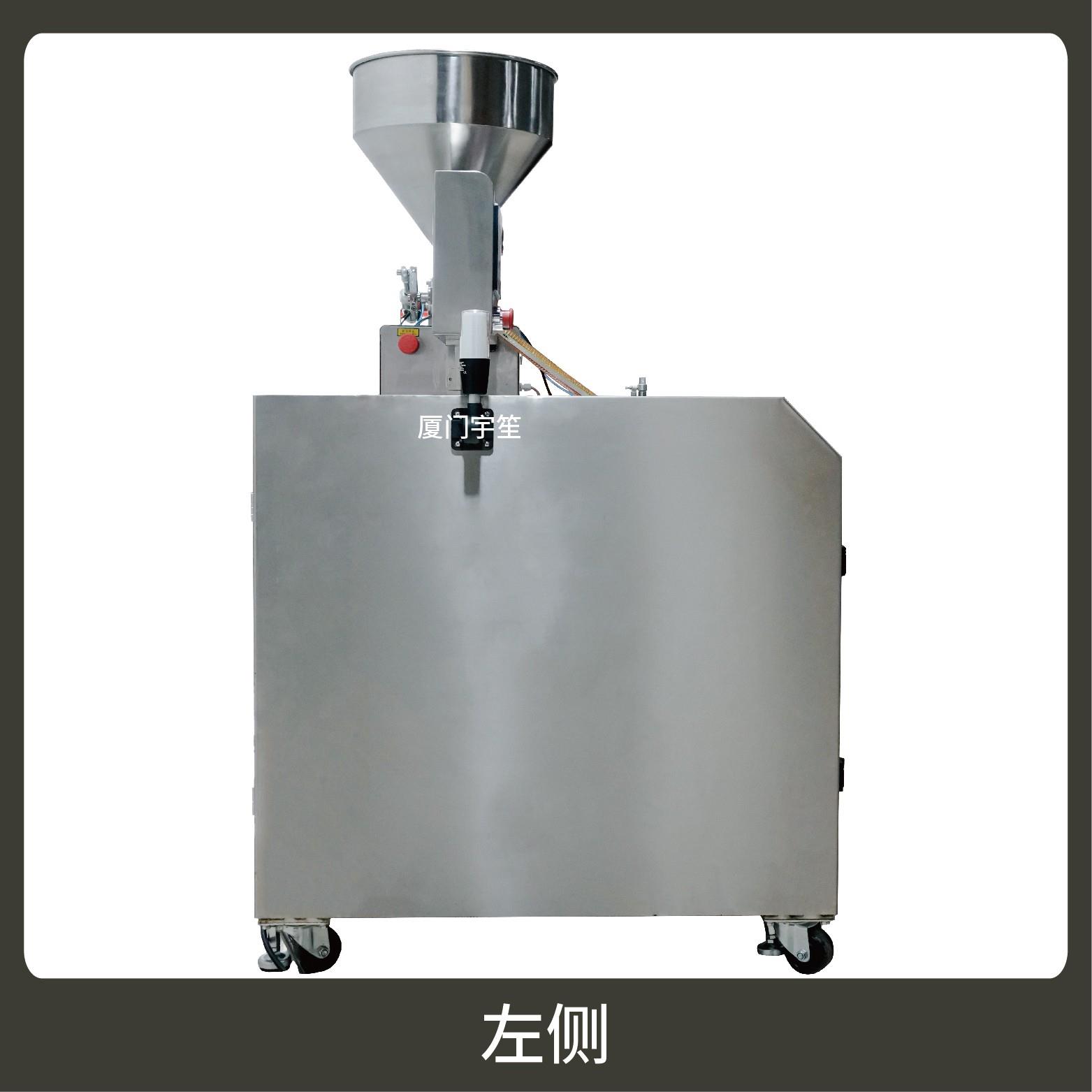 2、包裝流程全自動(dòng),無(wú)需人工操作,可抽真空、充氮?dú)?,組合下料??筛鶕?jù)充填物料的性質(zhì)選配不同的下料結(jié)構(gòu),且可根據(jù)客戶要求配置打印批號(hào)等功能。