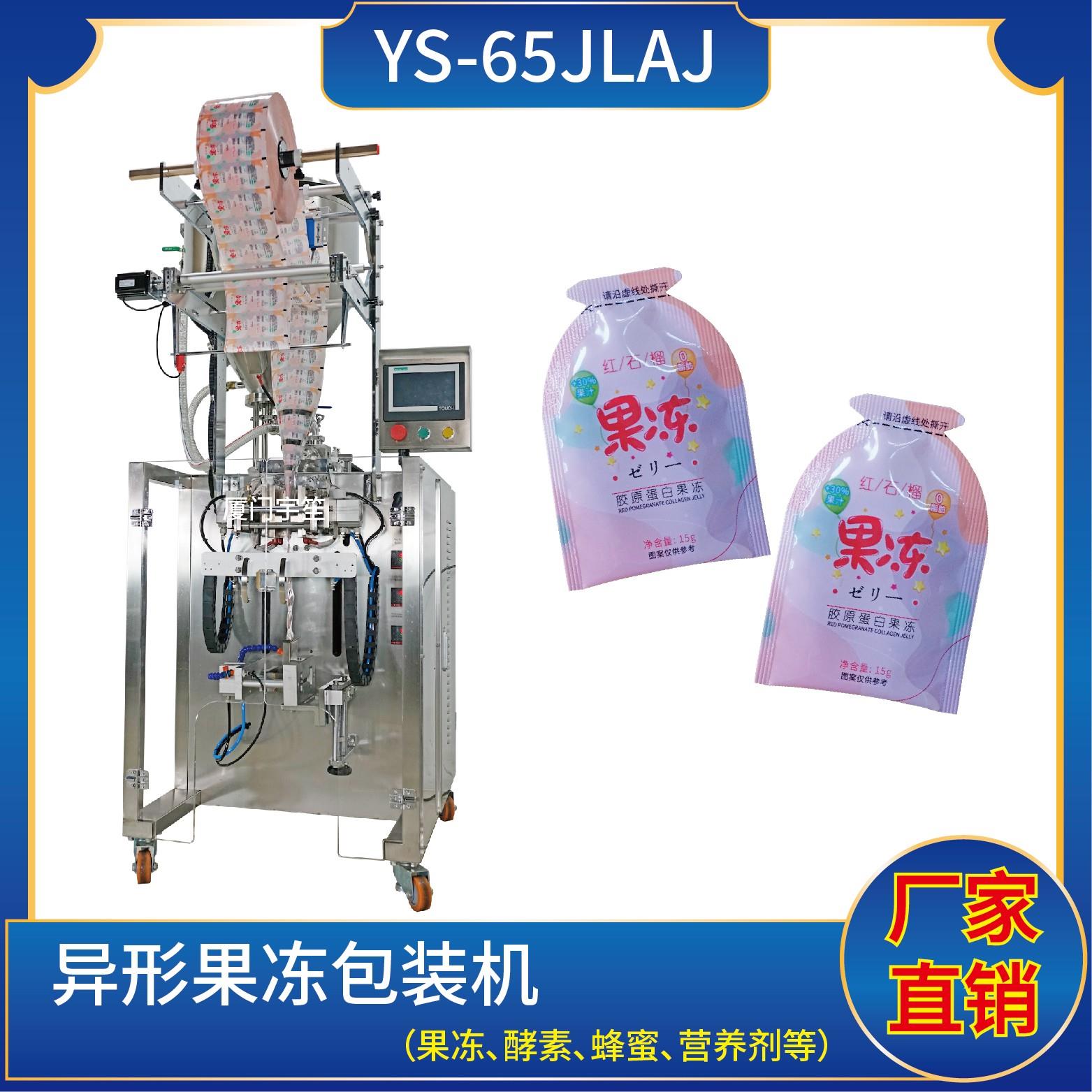 YS-65 異型袋果凍包裝機特 點 1、適用于食品、醫(yī)藥、化工、化妝品行業(yè)中液體、醬料等物品的計量包裝。2、可自動完成制袋、計量、下料、封合、分切、計數(shù)、且可根據(jù)客戶要求配置打印批號等功能。3、觸摸屏操作,PLC 控制,驅(qū)動步進電機控制袋長,性能穩(wěn)定、調(diào)整方便、檢測準確。智能式溫控儀,PID調(diào) 節(jié),保證將…