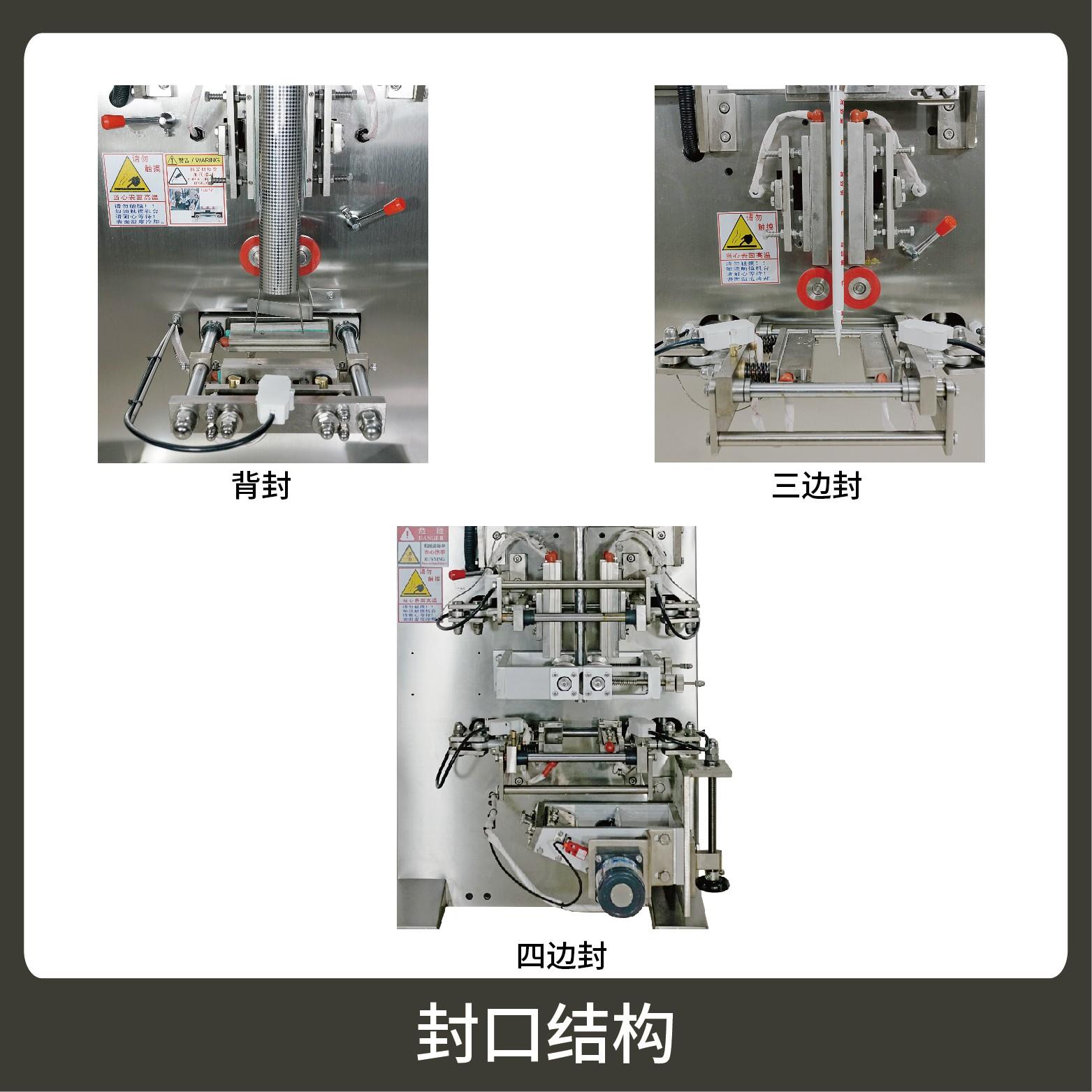 3、觸摸屏操作,PLC 控制,驅(qū)動步進電機控制袋長,性能穩(wěn)定、調(diào)整方便、檢測準確。智能式溫控儀,PID調(diào)節(jié),保證將溫度的誤差范圍控制在1℃以內(nèi)。