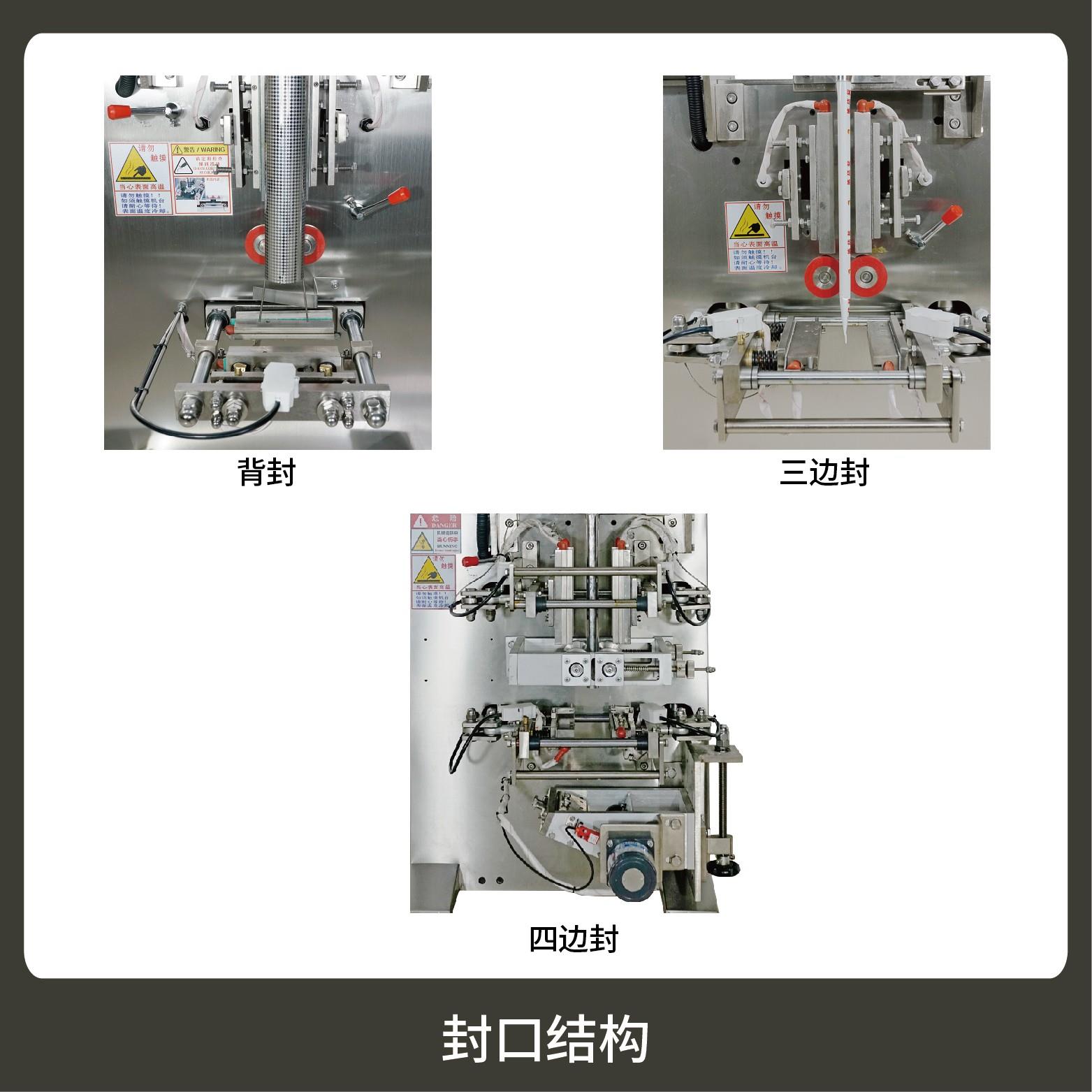 3、觸摸屏操作,PLC 控制,驅(qū)動步進電機控制袋長,性能穩(wěn)定、調(diào)整方便、檢測準確。智能式溫控儀,PID調(diào)節(jié),保證將溫度的誤差范圍控制在1℃以內(nèi)。